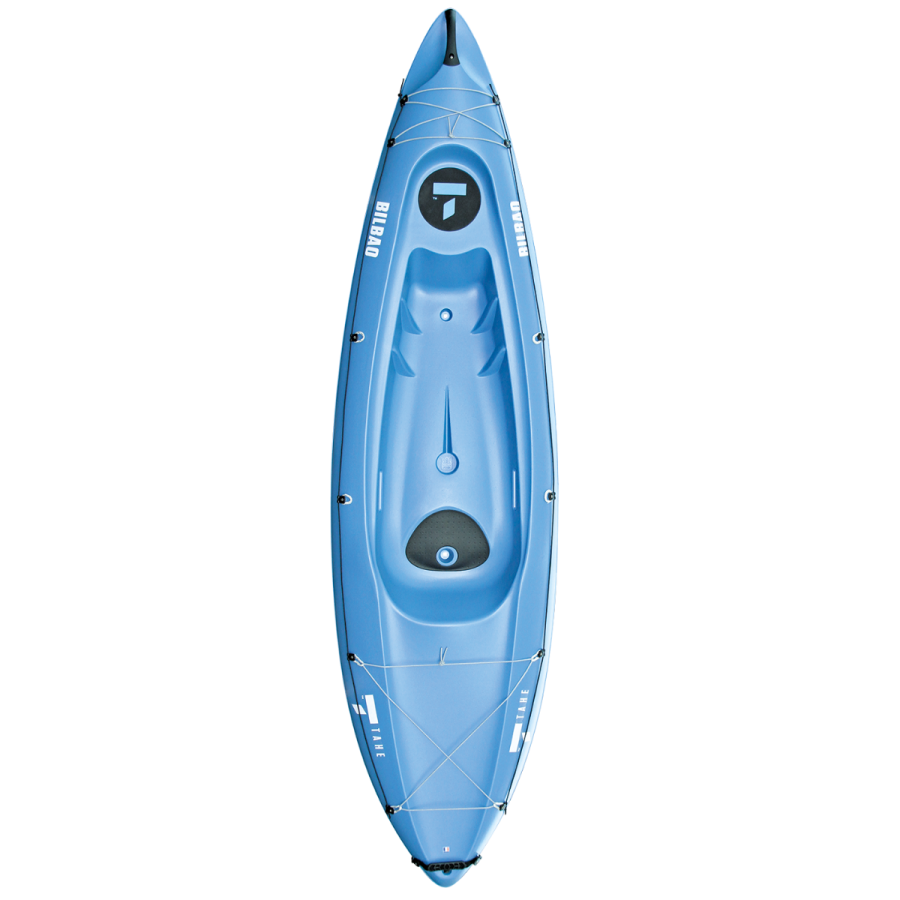 KAYAK BILBAO AZUL 1 PERSONAS. El TAHE Bilbao es un kayak versátil para una sola persona que se adapta tanto a kayakistas principiantes como experimentados. Ya sea que esté remando por deporte, explorando, buceando o remando rápidamente con los niños, la calidad de su diseño hace que todas las actividades sean posibles con comodidad y facilidad. La forma fluida del casco proporciona una conducción suave y agradable, mientras que la forma de la cubierta y los accesorios le permiten llevar equipo con una estabilidad y seguridad óptimas. Su tamaño y peso reducido hacen que sea fácil de guardar y transportar.
